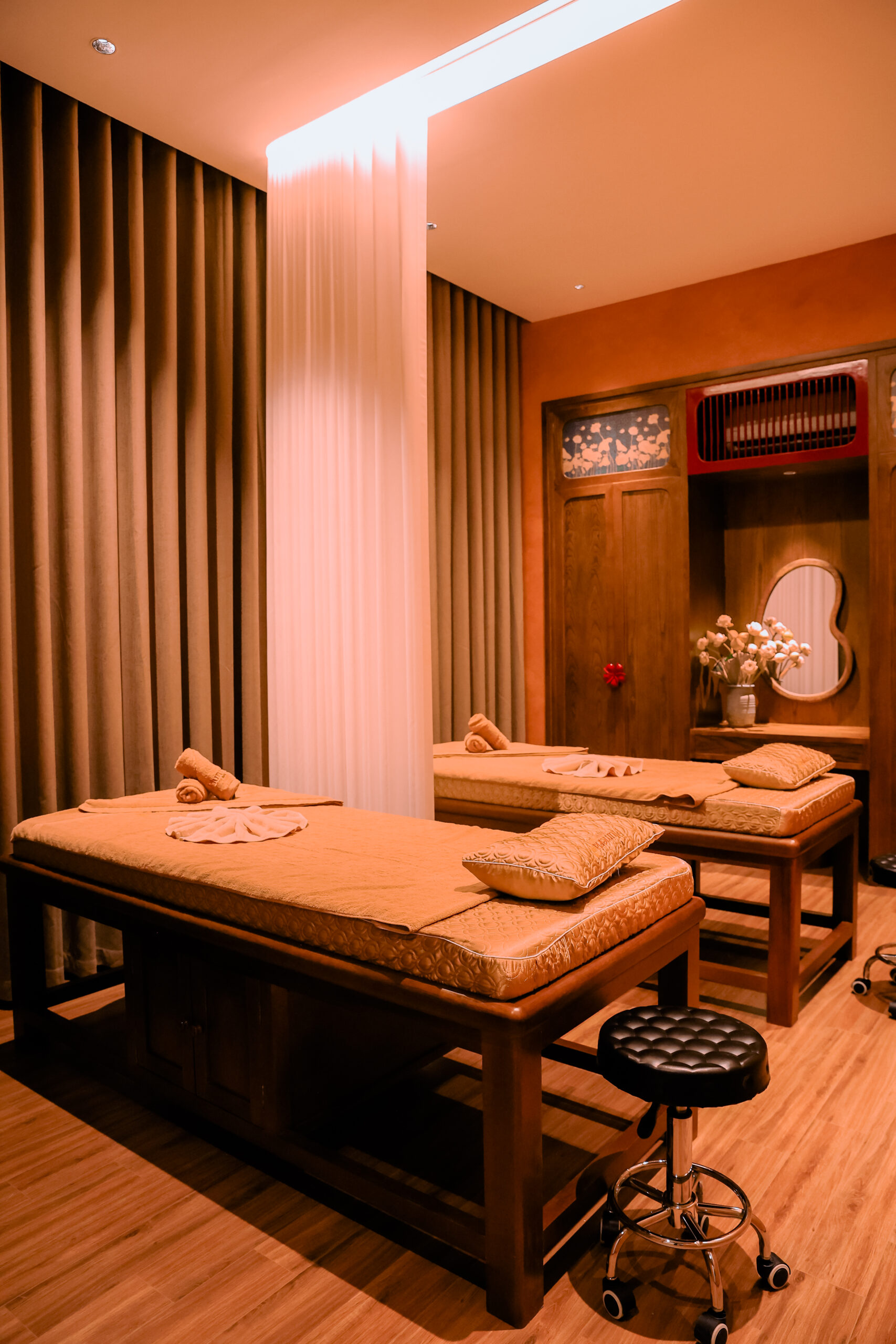 Không gian tại Plumeria Spa by Royal được thiết kế theo tiêu chuẩn resort wellness 5 sao, mang đến cảm giác yên bình và sang trọng: